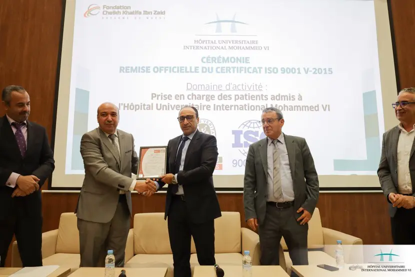 وحسب البلاغ، فإنه من خلال الحصول على شهادة 2015 V 9001 ISO، يثبت المستشفى الجامعي الدولي محمد السادس، مرة أخرى، التزامه ببناء ثقافة مسؤولة وتطوير الأداء العالي في رعاية المرضى المقبولين للاستشارات/ الاستكشافات وحالات الطوارئ وخدمات الاستشفاء.