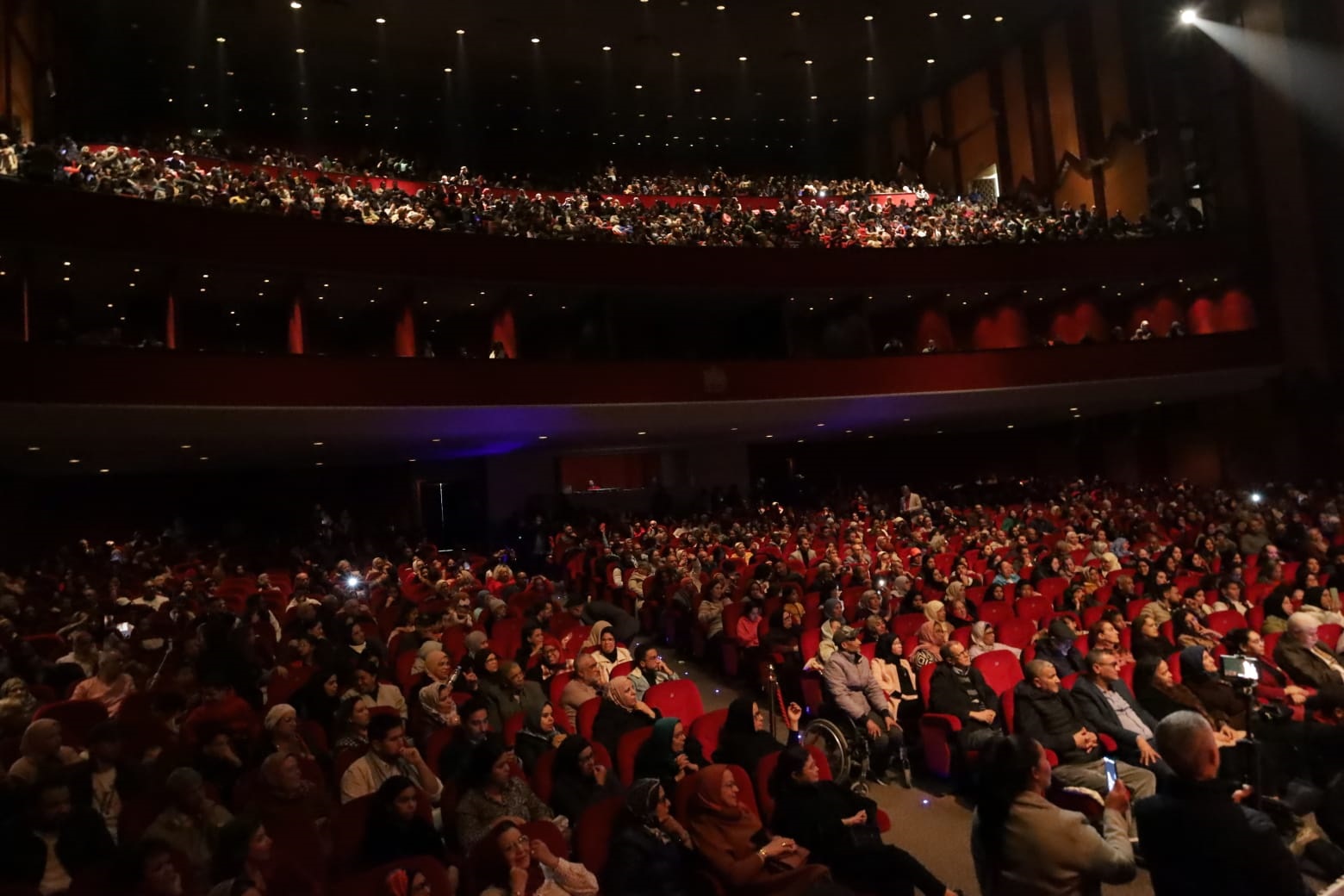 لم تسع طبقات مسرح محمد الخامس بالرباط كل الجماهير التي حجت بكثافة لمتابعة السهرة الفنية الكبرى التي أحيتها جمعية منار العيون للتراث والطرب الحساني مساء أمس الأربعاء، بمسرح محمد الخامس بالرباط تحت شعار “الثقافة والفن في خدمة الوحدة الترابية”. حيث تفاعل الحضور الكبير مع الأنغام الحسانية والغيوانية والعيساوية التي صدحت بها جنبات المسرح وقدمتها مجموعات غنائية من عدد من جهات المملكة.