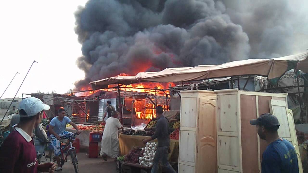 وقد أتى الحريق ، الذي انتشر لهيبه في حدود الساعة الواحدة زوالا ، على عشرات المحلات في سوق المسيرة الثالث، الواقع في حي مولاي رشيد، و خصوصا ورشات النجارة والنسيج.