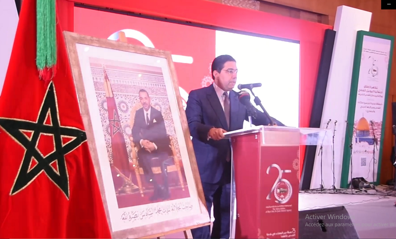 وقال السيد بوريطة، في كلمة بمناسبة افتتاح فعاليات اليوبيل الفضي لوكالة بيت مال القدس الشريف بالمركز الدولي للمؤتمرات محمد السادس بالصخيرات، إن “الوكالة، بتوجيهات من جلالة الملك، قد دأبت على أداء مهمتها النبيلة من خلال عمل ميداني متواصل يروم صيانة الهوية الحضارية للمدينة المقدسة وتحسين الأوضاع الاجتماعية والمعيشية للساكنة المقدسية ودعم صمودها وبقائها في القدس”.