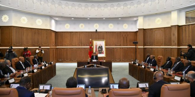 جاء ذلك على هامش استقبال وزير الشؤون الخارجية والتعاون الإفريقي والمغاربة المقيمين بالخارج، ناصر بوريطة، لهؤلاء المسؤولين الأفارقة السابقين من أجل تسليمه “الكتاب الأبيض” الذي صادقوا عليه بالإجماع، أول أمس السبت بمراكش، خلال الاجتماع الأول لتتبع “نداء طنجة” لطرد الجمهورية الوهمية من الاتحاد الافريقي”، وأكدوا فيه أن وجود هذا الكيان الوهمي المنبثقة عن جماعة انفصالية مسلحة، يعكس الهشاشة المؤسساتية للمنظمة، ويمثل عقبة لا جدال فيها أمام الاندماج الاقتصادي الإقليمي والقاري.