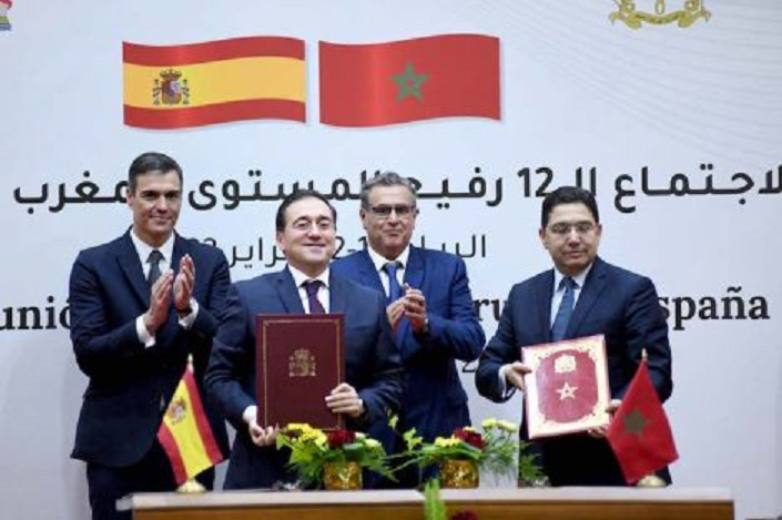وتوجت الدورة الثانية عشرة للاجتماع رفيع المستوى المغربي- الإسباني، الذي انعقد برئاسة رئيس الحكومة، عزيز أخنوش، ورئيس الحكومة الإسبانية، بيدرو سانشيز، بإصدار إعلان مشترك أعرب فيه الطرفان عن التزامهما باستدامة العلاقات الممتازة التي جمعتهما على الدوام، كما جددا التأكيد على رغبتهما في إثرائها باستمرار.