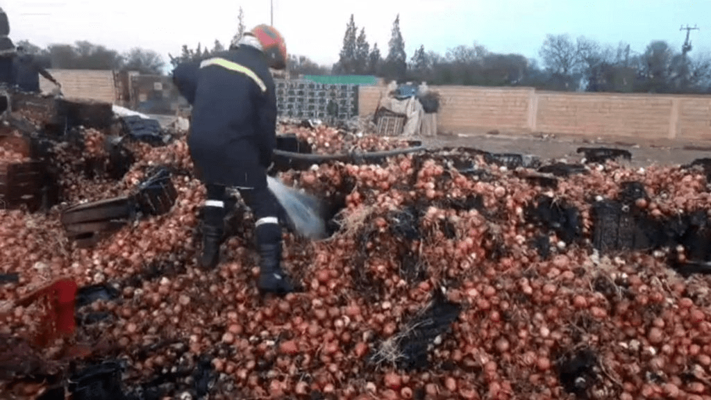 القاء القبض على الشخص الذي اضرام النار عمدا في شحنات كبيرة من البصل بمخزنة داخل سوق الجملة للخضر بمدينة برشيد