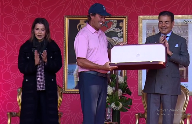 إثر ذلك، التحق صاحبا السمو الملكي بالمنصة الشرفية، حيث تقدم للسلام عليهما كل من السيدة ألكسندرا أرماس، الرئيسة المديرة العامة للدوري الأوربي للسيدات، والسيد ميلر برادلي، رئيس دوري الأبطال لرابطة لاعبي ال غولف المحترفين، والسيد مصطفى الزين، الرئيس المنتدب الأول للجامعة الملكية المغربية للغولف، قبل أن يتابعا سموهما نهاية منافسات جائزة الحسن الثاني.