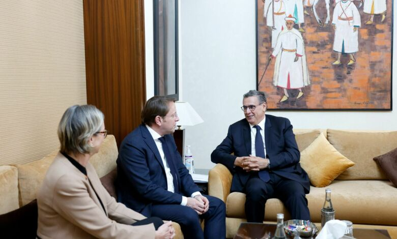 أجرى رئيس الحكومة، عزيز أخنوش، اليوم الخميس بالرباط، مباحثات ثنائية، مع المفوض الأوروبي المكلف بسياسة الجوار والتوسع، أوليفر فاريلي، الذي يقوم بزيارة عمل إلى المغرب .