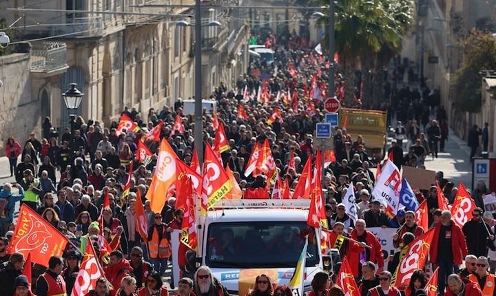وفي مرسيليا، التي شهدت عدة عمليات لعرقلة السير خلال فترة ما بعد الظهر، قام مئات الأشخاص بالنزول إلى الشوارع احتجاجا على إصلاح نظام التقاعد، والذي ينص بشكل خاص على رفع سن التقاعد إلى 64 عاما.