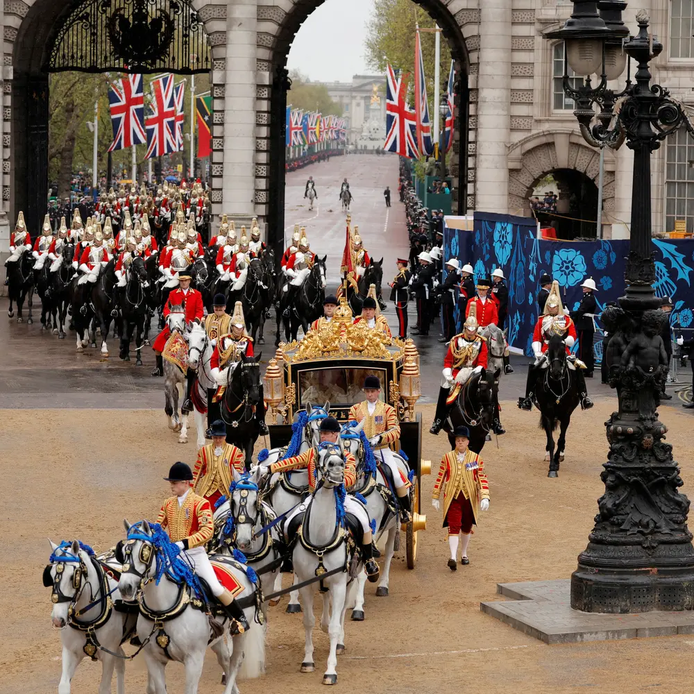 وشارك المئات من الجنود في هذا الموكب، بينما عزفت فرقة عسكرية النشيد الوطني عند الانطلاق. ووجه الآلاف من الأشخاص التحية للملك أثناء مروره، بينما ظل المئات منهم ينتظرون طوال ليلة ممطرة على جنبات الطريق الطويل المؤدي من قصر باكنغهام إلى ساحة ترافالغار.