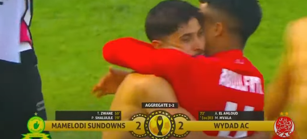 وسجل هدفي الوداد أيوب العملود (د 72) وموتوبي مفالا بالخطأ ضد مرماه (د 83)، فيما سجل هدفي صن داونز ثيمبا زواني (د 50)، وبيتر شالوليلي (د 79)، ولحق الوداد الرياضي بالأهلي المصري الذي ضمن بطاقته ،أمس الجمعة، عندما جدد فوزه على ضيفه الترجي التونسي 1-0 بعدما كان تغلب عليه بثلاثية نظيفة ذهابا في تونس العاصمة.