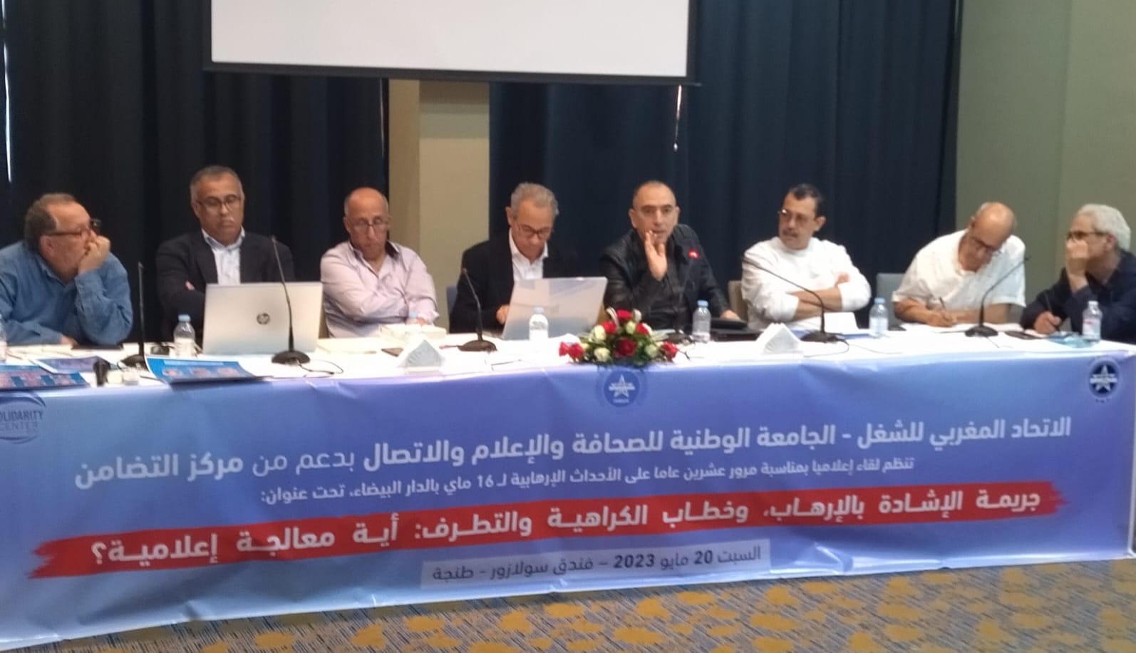 نظمت الجامعة الوطنية للاعلام والاتصال بمدينة طنجة ندوة فكرية وإعلامية يوم 20 مايو 2023 حول موضوع جريمة الاشادة بالإرهاب وخطاب الكراهية والتطرف: أية معاجة إعلامية؟” وذلك في سياق إحياء الذكرى العشرين لأحداث الدار البيضاء الارهابية في 16 مايو 2003.
