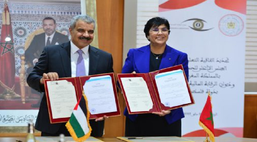 وقد وقع بالأحرف الأولى على هذه المذكرة كل من الرئيسة الأولى للمجلس الأعلى للحسابات السيدة زينب العدوي، ومدير ديوان الرقابة المالية والإدارية لدولة فلسطين، إياد تميم.