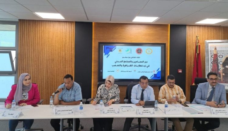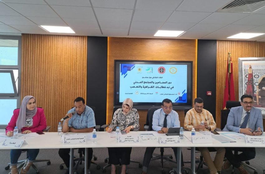 تدارس لقاء تفاعلي نظمته الجمعية الوطنية للمحامين بالمغرب بشراكة مع هيئة المحامين بتطوان وجمعية توازة لمناصرة المرأة بمرتيل، وبدعم من وزارة العدل، أمس الجمعة بدار المحامي المتوسطية بتطوان، موضوع “دور المحامين والمجتمع المدني في نبذ خطابات الكراهية والتعصب”، بحضور محامين وباحثين وفعاليات حقوقية.