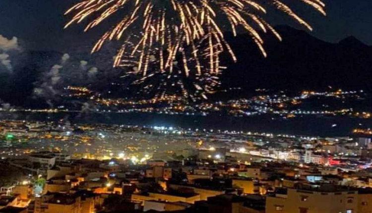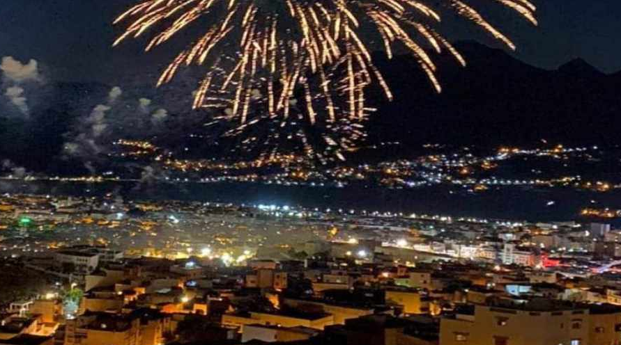 بعد نهاية عروض التشكيلات الموسيقية، أنارت الشهب النارية سماء مدينة تطوان، حيث اشرأبت أعناق الجماهير إلى سماء مدينة الحمامة البيضاء لمتابعة الأضواء المنبعثة من المفرقعات، التي رسمت على ظلمة الليل، بشهبها ذات الألوان البيضاء والخضراء والحمراء والزرقاء، ألقا خطف أنظار المتابعين فرحا بعيد العرش المجيد.