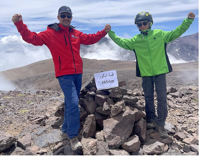 وأضاف أنه منذ سنتين شرعا بتسلق القمم المغربية بانتظام، مع ذروة تم بلوغها سنة 2022 بتسلق 22 قمة، مسجلا أنه وضع مع ابنه هدفا طموحا يتمثل في تسلق قمة جبل كليمنجارو في شمال تنزانيا، وهي أعلى قمة في إفريقيا يبلغ ارتفاعها 5900 متر تقريبا، إلا أن الأطباء نصحوه بعدم القيام بهذا المسار في الوقت الحالي نظرا لصغر سن يوسف وصعوبة كليمنجارو. ومن ثم وقع الاختيار على جبل “أرارات” التركي.