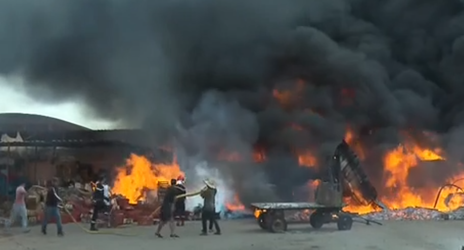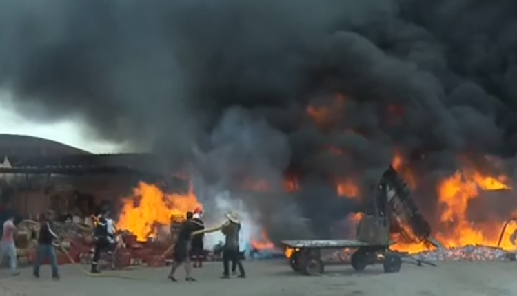 حريق بمستودع تجميع صناديق الخضر والفواكه التابع لسوق الجملة بمنطقة سيدي غانم بمراكش.