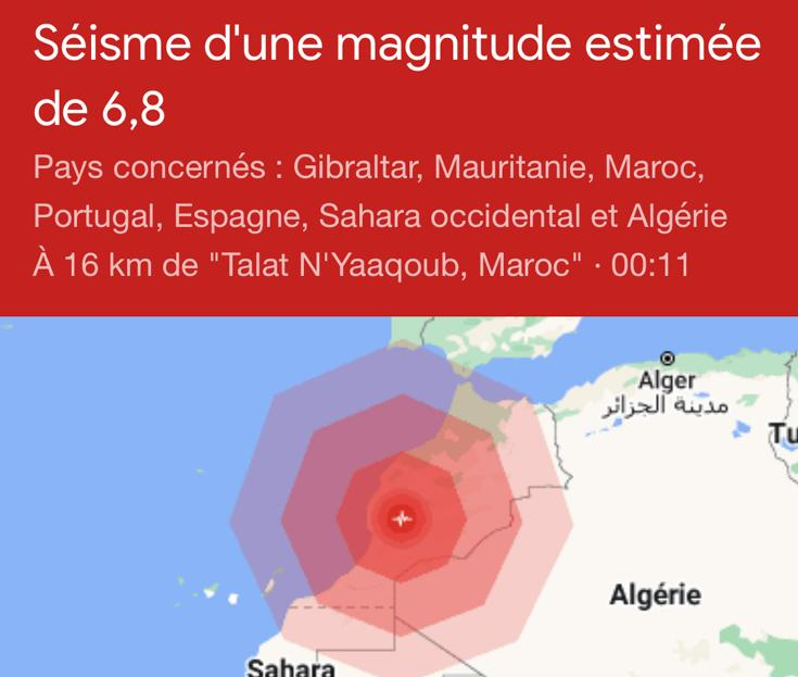 وحسب مصدر “كوكل” فقد ضربت هذه الهزة ايضا جبل طارق والبرتغال وموريتانيا دون تفاصيل تذكر.