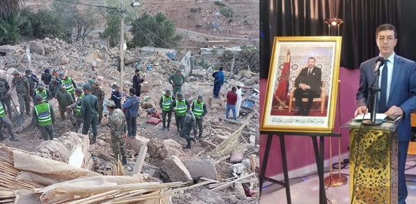 وتوجه الحاج عبد المالك أبرون بالتقدير والإمتنان لجلالة الملك محمد السادس نصره الله عل جهوده الخيرة وحرصه الشديد عل تتبع عمليات الإنقاذ وتفقد أحوال الناجين من الزلزال .