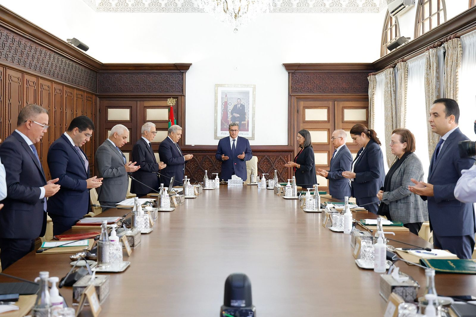 حضر هذا الاجتماع كل من السادة عبد الوافي لفتيت وزير الداخلية، ونادية فتاح وزيرة الاقتصاد والمالية، ونزار بركة وزير التجهيز والماء، وشكيب بنموسى وزير التربية الوطنية والتعليم الأولي والرياضة، وخالد آيت طالب وزير الصحة والحماية الاجتماعية، وفاطمة الزهراء المنصوري وزيرة إعداد التراب الوطني والتعمير والإسكان وسياسة المدينة، ومحمد المهدي بنسعيد وزير الشباب والثقافة والاتصال، وعواطف حيار وزيرة التضامن والإدماج الاجتماعي والأسرة، وفوزي لقجع الوزير المنتدب لدى وزيرة الاقتصاد والمالية المكلف بالميزانية، ومصطفى بايتاس الوزير المنتدب لدى رئيس الحكومة المكلف بالعلاقات مع البرلمان، الناطق الرسمي باسم الحكومة.