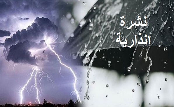 أفادت المديرية العامة للأرصاد الجوية بأن زخات مطرية رعدية قوية متفرقة مصحوبة بهبات رياح وبالبرد ستهم، اليوم الخميس، عددا من مناطق المملكة.