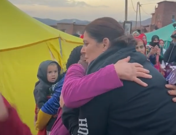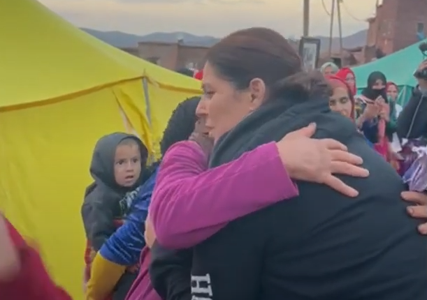 عناق حار لفاطمة الزهراء المنصوري اثناء زيارتها لبعض الدواوير المتضررة من الزلزال +”الفيديو”