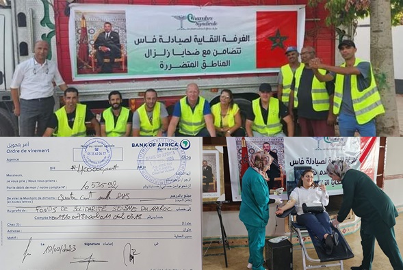 كغيرهم من مغاربة المعدن الأصيل والتربية على القيم والاخلاق والسعي نحو مساعدة الاخرين في كل الظروف والأحوال، قامت الغرفة النقابية لصيادلة فاس من خلال مجموعة أهل الخير بإنشاء مبادرة مساعدة ودعم اخوانهم في المناطق الجبلية بإقليم الحوز الذي شهد هزة ارضية عنيفة بلغت نسبتها 7 درجات على سلم ريشتر، وخلفت حسب اخر الاحصائيات أزيد من 2900 قتيل وازيد من 5500 جريح اغلب اصاباتهم حرجة وبليغة، حيث أعرب عموم الصيادلة عن عميق مشاعر الحزن والأسى على إثر المصاب الجلل، معبرين عن تضامنهم المطلق مع ضحايا الزلزال.