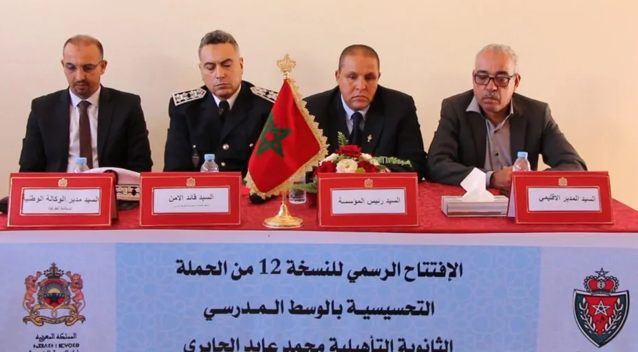 انطلقت مساء أمس الأربعاء بالثانوية التأهيلية محمد عابد الجابري بأكادير، النسخة الـ 12 من الحملة التحسيسية للأمن الوطني بالمؤسسات التعليمية، والمنظمة من قبل المديرية الإقليمية لوزارة التربية الوطنية والتعليم الأولي والرياضة بأكادير إداوتنان.