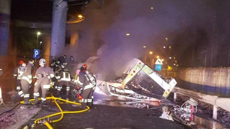وقال رجال الإطفاء “إنه تدخل معقد للغاية”، حيث “اشتعلت النيران” في الحافلة بعد سقوطها من جسر يمتد على طول خط سكة حديدية بين ميستري ومارجيرا، وهما مدينتان تابعتان لبلدية البندقية.