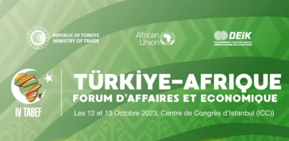 ينظم مجلس العلاقات الاقتصادية الخارجية التركي (DEİK)، النسخة الرابعة لمنتدى الأعمال التركي-الأفريقي (TABEF) في بمركز اسطنبول للمؤتمرات، يومي 12 و13 من أكتوبر2023، تحت شعار : : “التحديات والفرص: شراكات اقتصادية أقوى بين تركيا وأفريقيا”، وذلك برعاية وزارة التجارة التركية، وبتنسيق مع الإتحاد الأفريقي.