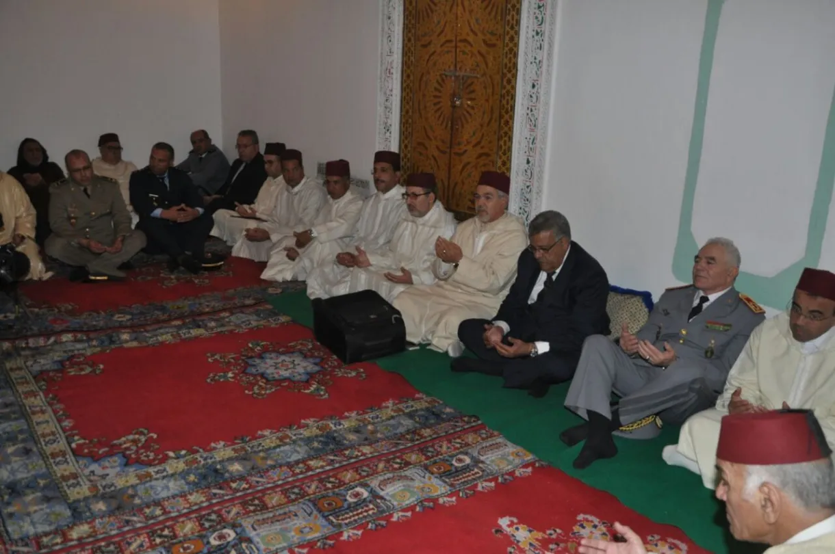 كما توجه الحاضرون إلى الباري جلت قدرته بأن يمطر شآبيب الرحمة والمغفرة والرضوان على روحي جلالة المغفور لهما محمد الخامس والحسن الثاني.