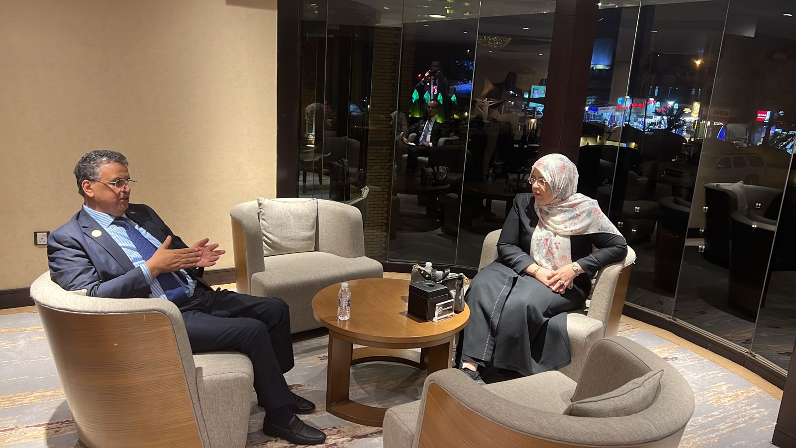 وعلى هامش اجتماعات المكتب التنفيذي لمجلس وزراء العدل العرب بدورته الـ39 المنعقدة ببغداد، عقد وزير العدل  الأستاذ عبد اللطيف وهبي، يوم امس الأحد 15 أكتوبر 2023، لقاءً مع وزيرة العدل الليبية السيدة حليمة إبراهيم عبدالرحمن