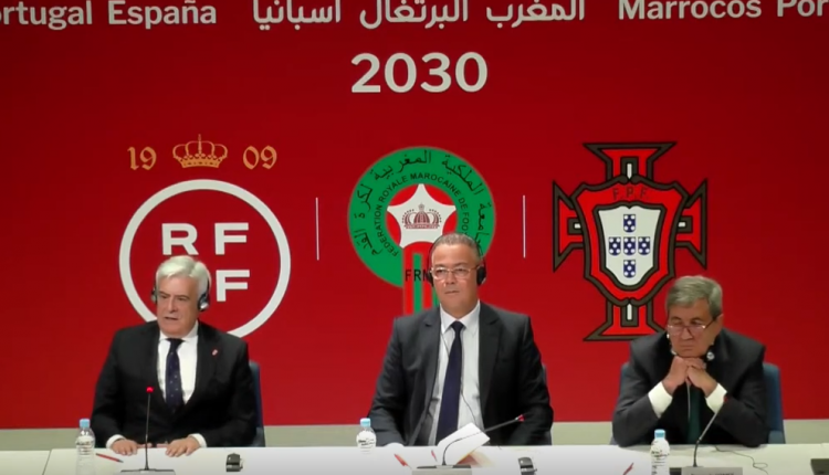 اجتمع رؤساء الاتحادات الكروية لكل من المغرب والبرتغال وإسبانيا، اليوم السبت بسلا، للتوقيع الرسمي على خطاب النوايا لاستضافة نهائيات كأس العالم 2030 ووضع تصور مشترك لاحتضان هذا العرس الكروي العالمي، حسبما أفادت به الجامعة الملكية المغربية لكرة القدم.
