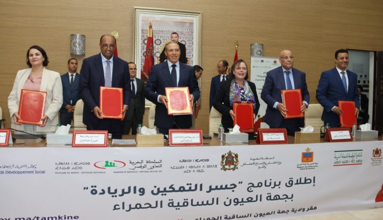 وعرف هذا اللقاء، الذي حضره رئيس مجلس الجهة سيدي حمدي ولد الرشيد، ورئيس المجلس الجماعي للعيون مولاي حمدي ولد الرشيد، والمدير العام للتعاون الوطني خطار المجاهدي، ومديرة وكالة التنمية الاجتماعية فاطمة حممو، والمدير المركزي المكلف بالنهوض بالأشخاص في وضعية إعاقة الطالب بويا أبا حازم، وعدد من المنتخبين ورؤساء المصالح الخارجية وفعاليات المجتمع المدني، توقيع اتفاقيات بين الوزارة وجماعة العيون، هم ت تسليم 14 مركزا اجتماعيا لفائدة الوزارة، وعرض حصيلة التسجيلات بالمنصة الرقمية للتمكين الاقتصادي، وتقديم عرض حول برنامج التمكين الاقتصادي للنساء ربات الأسر في وضعية صعبة.