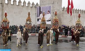 ومر الموكب، يتقدمه الشرفاء الحسونيون، وسط جموع غفيرة من ساكنة المدينة التي احتشدت على طول مسار الموكب، وهي تنشد مجموعة من الأذكار الدينية ترافقها مجموعات موسيقية أخرى.