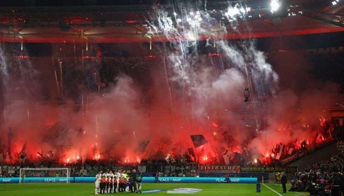 وبدأت الاشتباكات حوالي الساعة 5:45 مساء بالتوقيت المحلي، قبل 45 دقيقة من بداية الجولة الـ 12 من الدوري الألماني بين فرانكفورت وشتوتغارت، والتي انتهت بفوز الضيوف 2-1.