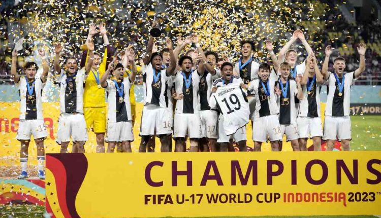 توج المنتخب الألماني لكرة القدم لأقل من 17 سنة بطلا للعالم بعد فوزه على نظيره الفرنسي بركلات الترجيح 4-3 (هدفين لمثلهما في الوقت القانوني)، في المباراة النهائية لكأس العالم لهذه الفئة التي أجريت اليوم السبت على أرضية ملعب ماناهان بسوراكارتا بأندونيسيا.