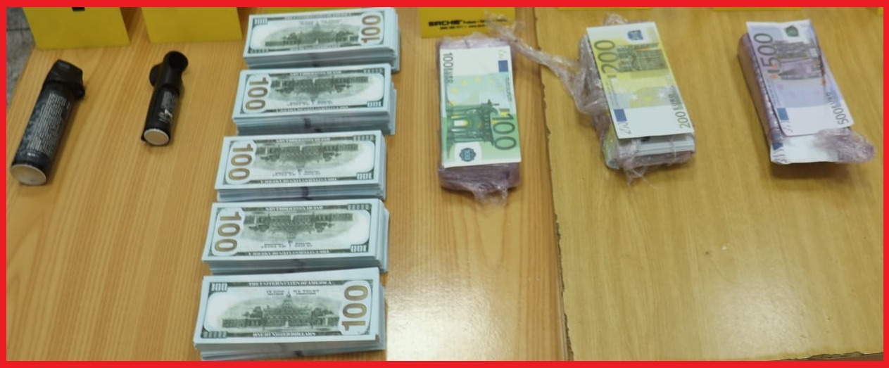 وقد مكنت عملية التفتيش المنجزة بداخل منزل يستغله المشتبه فيه بمدينة الدار البيضاء، من العثور بحوزته على بخاخين لغاز مسيل للدموع و2840 ورقة مالية أجنبية مزورة، من بينها 1600 ورقة مالية من فئة 100 دولار أمريكي و880 ورقة مالية من فئات 500 و200 و100 أورو.