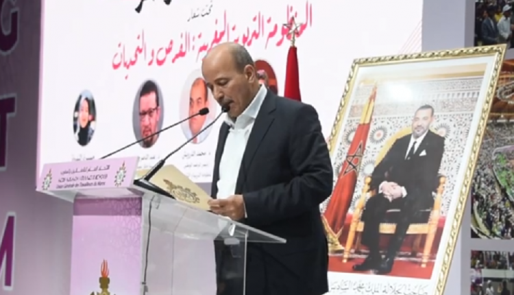 الكاتب العام لـ”الاتحاد العام للشغالين بالغرب” النعم ميارة يتلو البرقية المرفوعة الى جلالة الملك حدث TV في فبراير 3, 2024 شارك FacebookTwitterLinkedinWhatsAppالبريد الإلكتروني Facebook Twitter Messenger WhatsApp Email