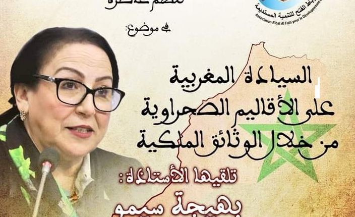 وقدمت السيدة سيمو، خلال محاضرة نظمتها جمعية رباط الفتح للتنمية المستديمة حول ” السيادة المغربية على الأقاليم الصحراوية من خلال الوثائق الملكية”، سردا تاريخيا لأهم المراحل والوثائق التي تثبت ممارسة السيادة المغربية على الأقاليم الصحراوية، وذلك من خلال ثلاثة محاور تهم “السيادة المغربية على الأقاليم الصحراوية” و”الصحراء المغربية على عهد الدولة العلوية الشريفة” و”بيان كيف نال الاستعمار بخطة مرسومة من وحدتنا الترابية”.