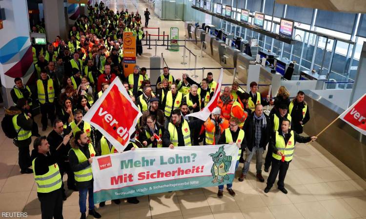 وسعت نقابة فيردي الألمانية نطاق دعوتها لإضراب موظفي أمن شركات الطيران بسبب الخلاف على الأجور، حيث يتوقع أن تتأثر 10 مطارات على الأقل حتى يوم الجمعة.