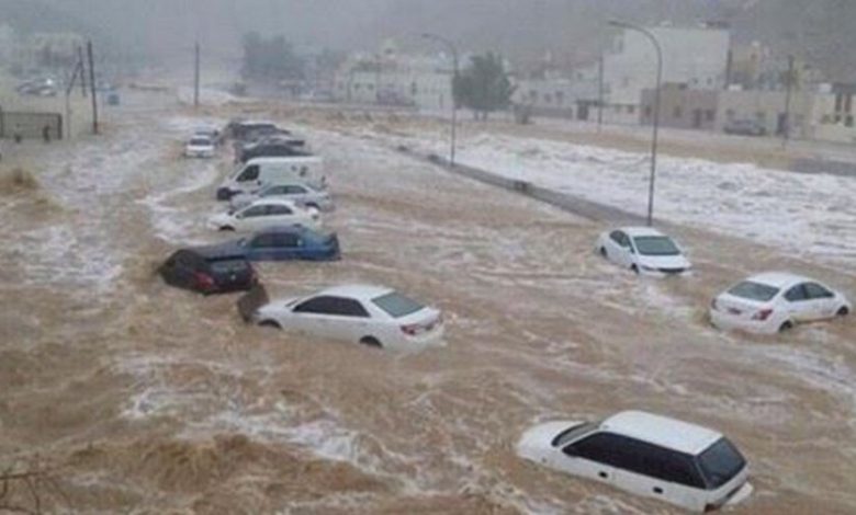 وأظهر مقطع فيديو سيارة عالقة وبداخلها أسرة برفقتها طفلان، فيما اقترب شابان منهم وساعدوهم على الخروج من السيارة والاحتماء من السيول بالصعود على الصخور.