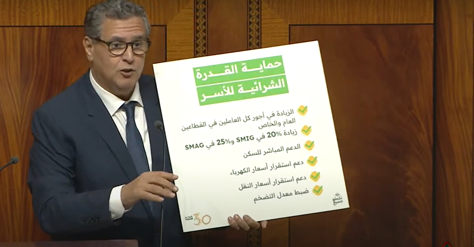 وأشادت فرق الأغلبية “بالسياسات الاجتماعية العميقة” التي نفذتها الحكومة خلال نصف ولايتها، بالتزامها بتفعيل ركائز الدولة الاجتماعية عبر اعتماد ورش الدعم المباشر للأسر المغربية، وتعميم وتوسيع خدمات التأمين الإجباري عن المرض، وتعميم التعويضات العائلية، وإطلاق الدعم المباشر للدولة لفائدة اقتناء السكن الرئيسي، مشددة على أن الحكومة تعمل على ضمان كل مقومات الاستدامة والحكامة والاستهداف الجيد ضمن هذا الورش، من خلال تعبئة كل الموارد التي تجعل من ضمان استدامة الأوراش خيارا استراتيجيا وليس مجرد تدابير ظرفية.