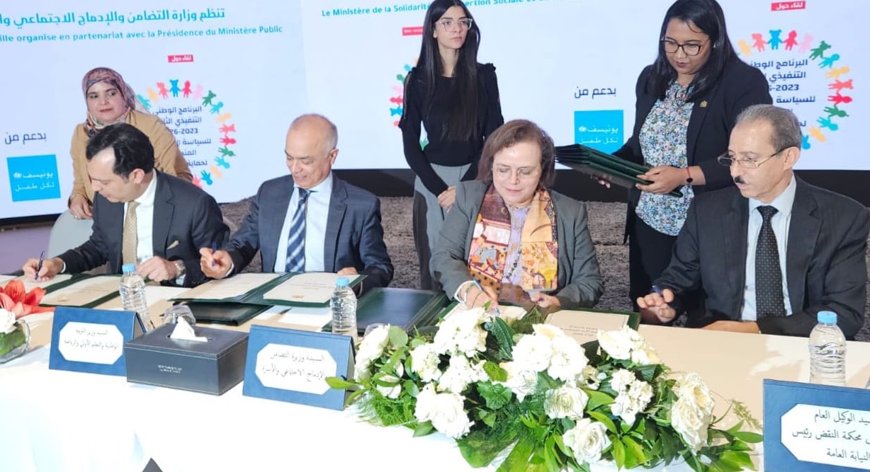 وجاء التوقيع على البروتوكول خلال لقاء نظمته وزارة التضامن والإدماج الاجتماعي والأسرة، بشراكة مع رئاسة النيابة العامة وبدعم من “يونيسيف”، لتقديم البرنامج الوطني التنفيذي الثاني للسياسة العمومية المندمجة لحماية الطفولة 2023-2026، وذلك في سياق تخليد اليوم الوطني للطفل.