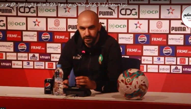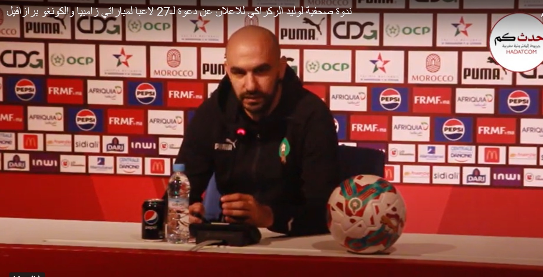 ندوة صحفية لوليد الركراكي للاعلان عن دعوة لـ27 لاعبا لمباراتي زامبيا والكونغو برازافيل حدث TV في مايو 28, 2024 شارك FacebookTwitterLinkedinWhatsAppالبريد الإلكتروني Facebook Twitter Messenger WhatsApp Email