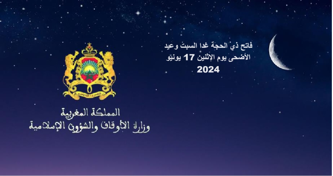 “تنهي وزارة الأوقاف والشؤون الإسلامية إلى علم المواطنات والمواطنين أنها راقبت هلال شهر ذي الحجة لعام 1445هـ بعد مغرب يوم الجمعة 29 ذي القعدة 1445هـ موافق 7 يونيو 2024م. فثبتت لديها رؤية الهلال ثبوتا شرعيا.