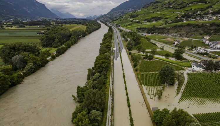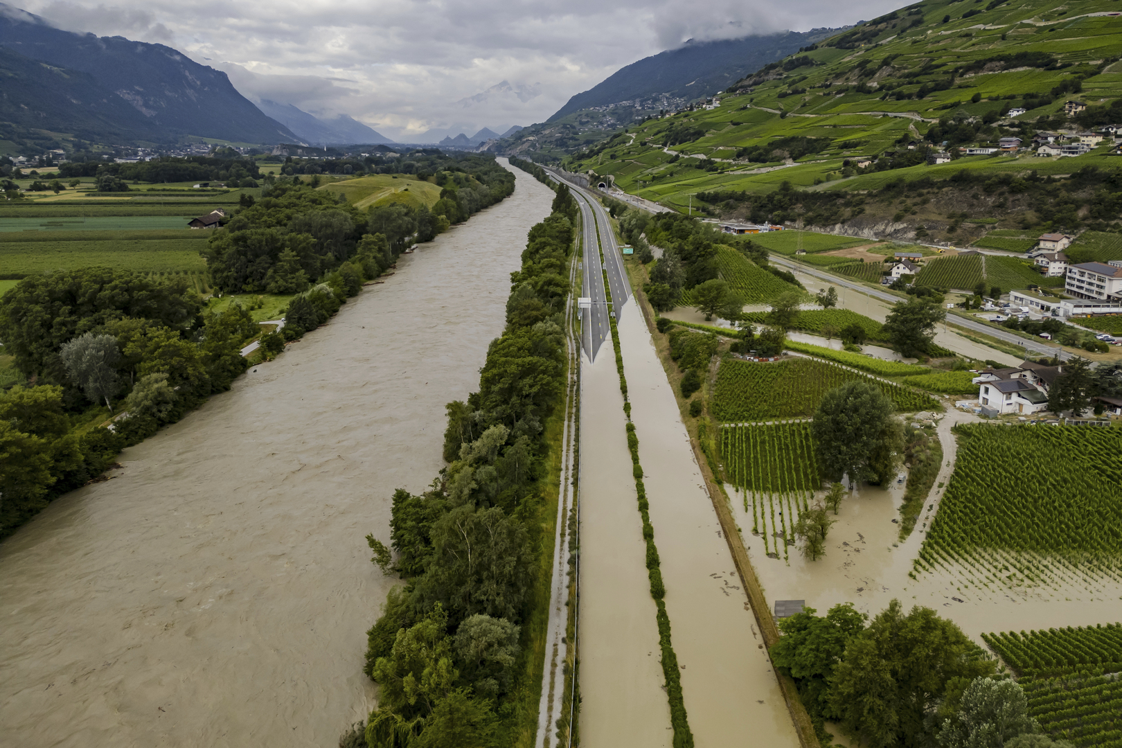 وإلى الشمال، فاض نهر الرون على ضفتيه في عدة مناطق في كانتون فاليه، مما أدى إلى غمر طريق سريع وخط للسكك الحديدية.