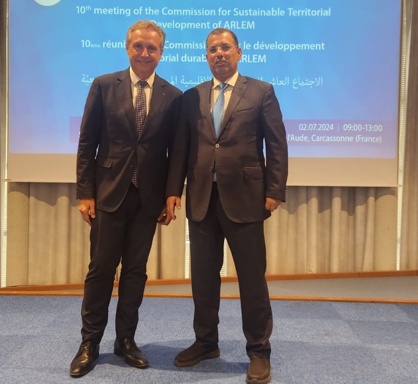 شارك عبد العزيز الدرويش رئيس الجمعية المغربية لرؤساء مجالس العمالات والأقاليم يومي 01 و02 يوليوز 2024 في الاجتماع العاشر للجنة التنمية الترابية المستدامة للجمعية الجهوية والإقليمية الأورو متوسطية (ARLEM) التي انعقدت بمدينة كاركسون (Carcassonne) الفرنسية.