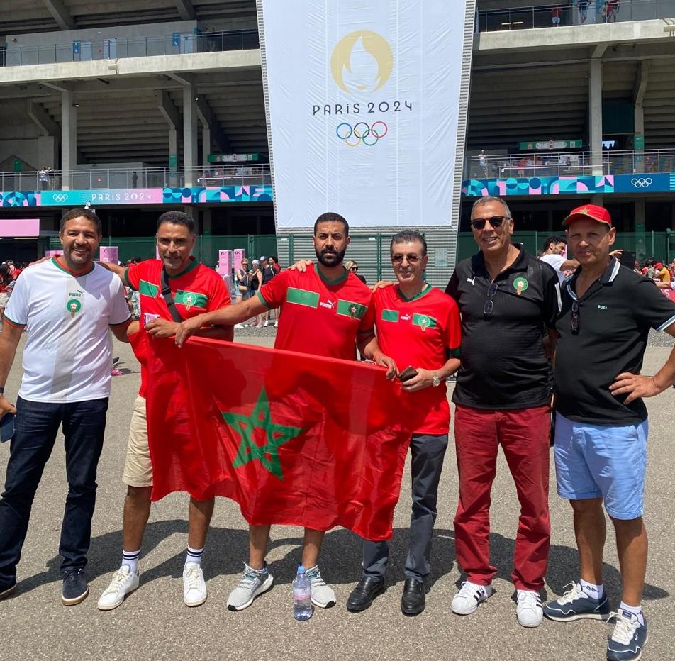 بعد أن عاش ملحمة قطر 2022 كرئيس للبعثة المغربية مع المنتخب الوطني الأول وتم توشيحه بوسام ملكي سامي على الروح الوطنية العالية التي أبان عليها خلال إقامته مع الأسود بقطر وأيضا للخدمات الكبيرة التي قدمها للفريق الوطني أبى الحاج عبد المالك أبرون عضو المكتب المديري للجامعة الملكية المغربية لكرة القدم ورئيس لجنة البنيات التحتية وتطوير مراكز التكوين إلا أن يحضر مع المنتخب الأولمبي في ملعب جوفري غيشاربمدينة سان تيتيان ويعيش ملحمة الفوز على منتخب الأرجنتين وهو يشارك الجماهير المغربية الأفراح والمسرات في قلب الملعب وخارجه، وهو يستحضر في نفس الوقت الملحمة الأطلسية لأسود الأطلس في مونديال قطر 2022 بنفس الحضور الجماهيري والروح العالية للمغاربة، بل الأكثر من ذلك سرق الحاج عبد المالك أبرون الأنظار في الملعب وخارجه حيث أبت الجماهير المغربية من كل الجاليات المغربية بأروبا إلا أن تأخذ صورا تذكارية مع الحاج عبد المالك أبرون توثق لأجمل اللحظات التي تزامنت مع أول فوز للمنتخب الأولمبي على حساب منتخب كبير وهو الأرجنتين.