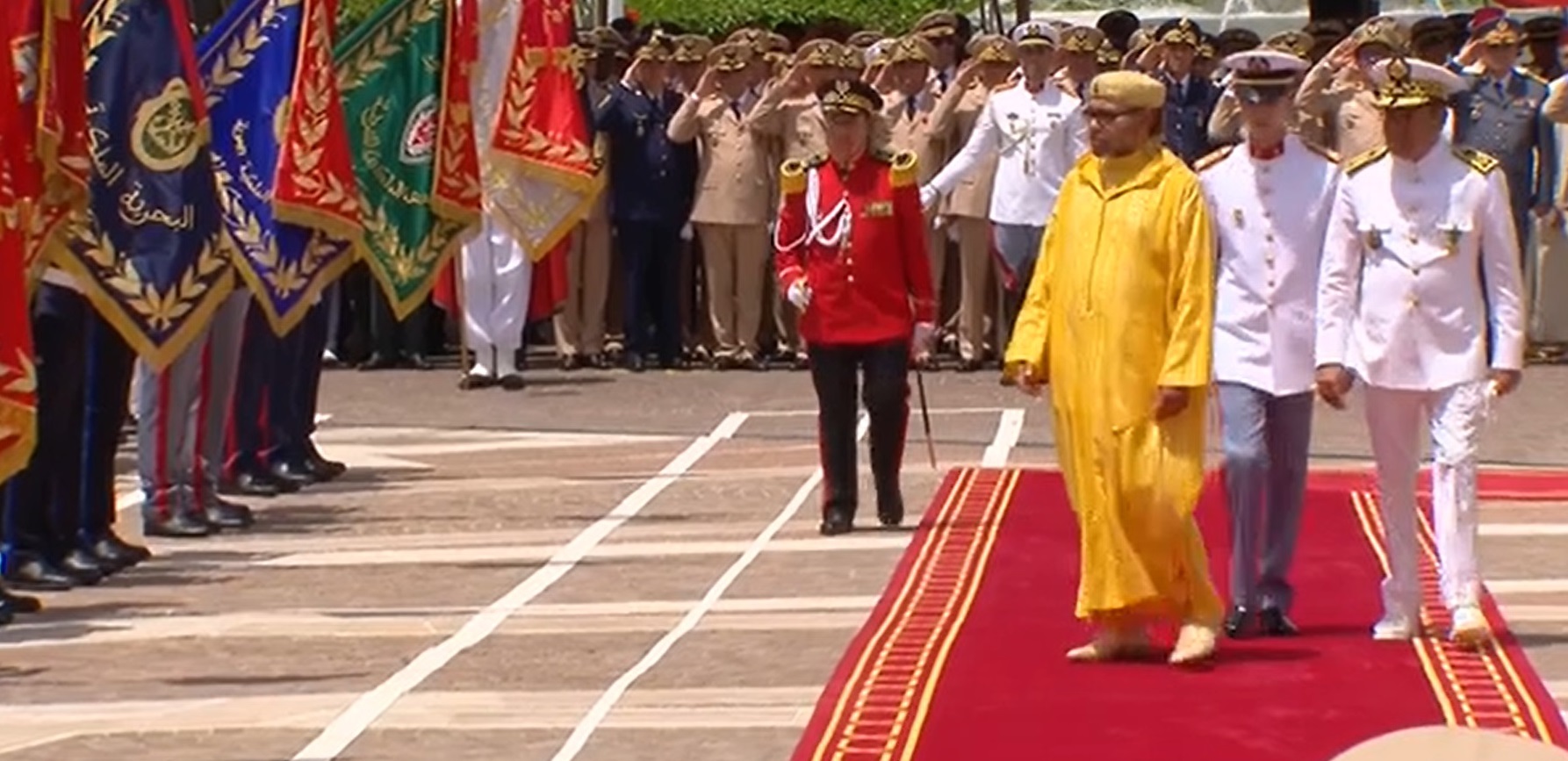 وعقب أداء القسم، قام صاحب الجلالة، مرفوقا بصاحب السمو الملكي ولي العهد الأمير مولاي الحسن وصاحب السمو الملكي الأمير مولاي رشيد، بتحية علم القوات المسلحة الملكية، قبل أن يستعرض مختلف أفواج الضباط التي أدت القسم. وينتمي الضباط المشاركون في مراسيم أداء القسم إلى الأفواج المتخرجة سنة 2024 التابعين للمدارس والمعاهد العسكرية وشبه العسكرية، وكذا أفواج ضباط الصف الذين تمت ترقيتهم إلى رتبة ضابط خلال 2023 وكذا الضباط الذين لم يتسنى لهم أداء القسم في السنوات الفارطة. ويتألف الفوج الذي أدى القسم من ضباط تخرجوا من المدارس العسكرية العليا.