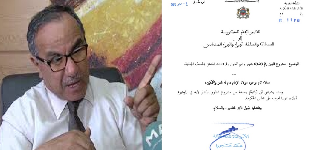 عبد الكبير طبيح : تم تداول رسالة على وسائط التواصل الاجتماعي من الأمانة العامة للحكومة المؤرخة في 03/06/2024 تحت رقم 1176 تتعلق بمشروع قانون المسطرة الجنائية موجهة إلى أعضاء الحكومة قبل أن يعقد مجلس الحكومة لدراسته في اجتماعه في 26/06/2024. وهو الاجتماع الذي لم يصادق فيه مجلس الحكومة على ذلك الشروع وآخره من أجل تعميق الدراسة في بعض مقتضياته.