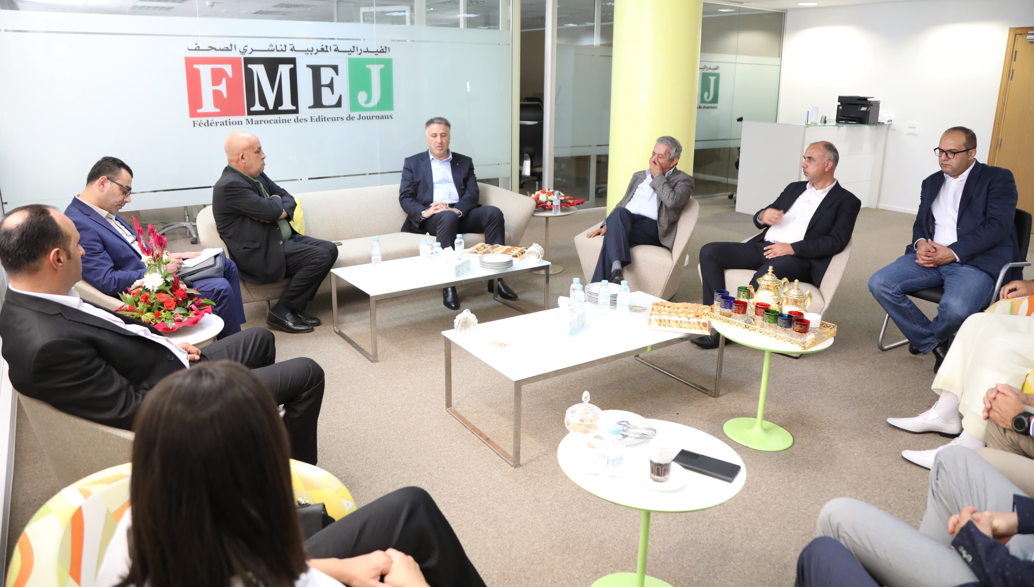 استقبلت الفيدرالية المغربية لناشري الصحف يومه الجمعة 4 اكتوبر 2024، بمقرها بالدار البيضاء، وفدًا فلسطينيًا رفيع المستوى ترأسه السيد أحمد عساف، الوزير المشرف العام على الإعلام الرسمي بدولة فلسطين، إلى جانب شخصيات ومسؤولين في الإعلام الفلسطيني .