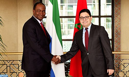 أجرى وزير الشؤون الخارجية والتعاون الدولي، ناصر بوريطة، اليوم الجمعة بالرباط، مباحثات مع وفد رفيع المستوى من سيراليون، يترأسه سامورا كامارا، مبعوث رئيس سيراليون والمرشح للانتخابات الرئاسية المقبلة في هذا البلد، مرفوقا بالسيد كايفالا ماراه وزير الشؤون الخارجية والتعاون الدولي.
